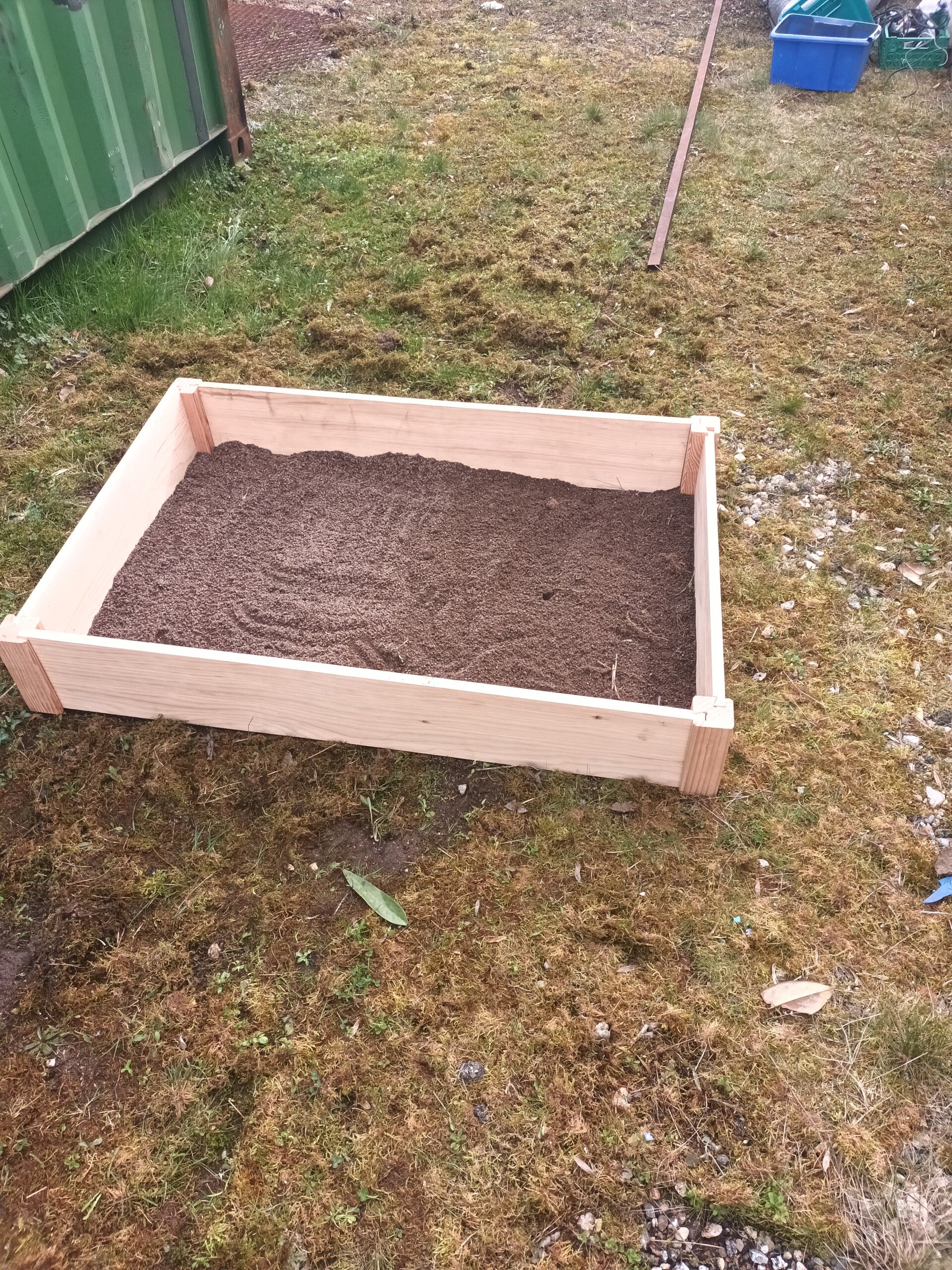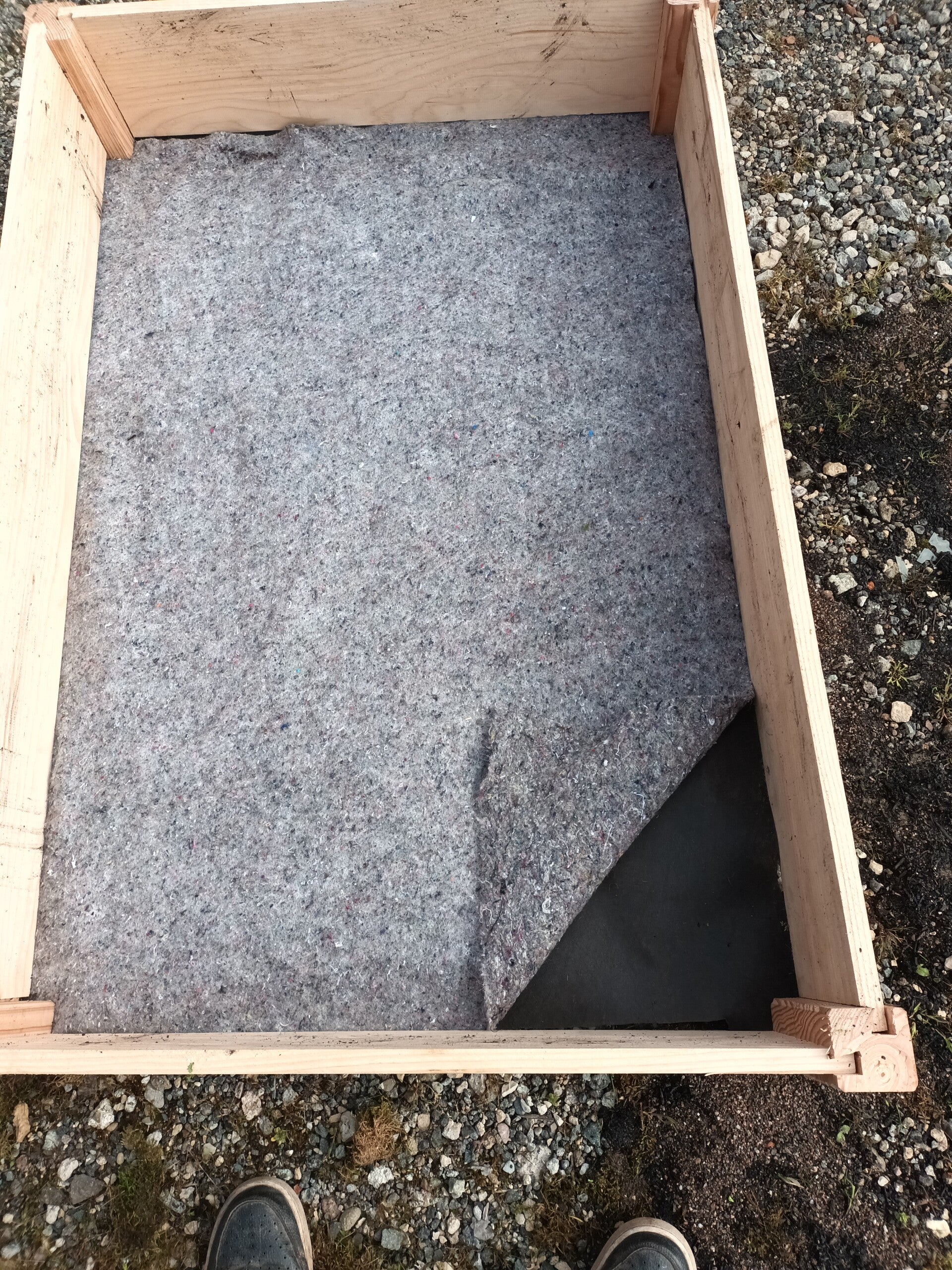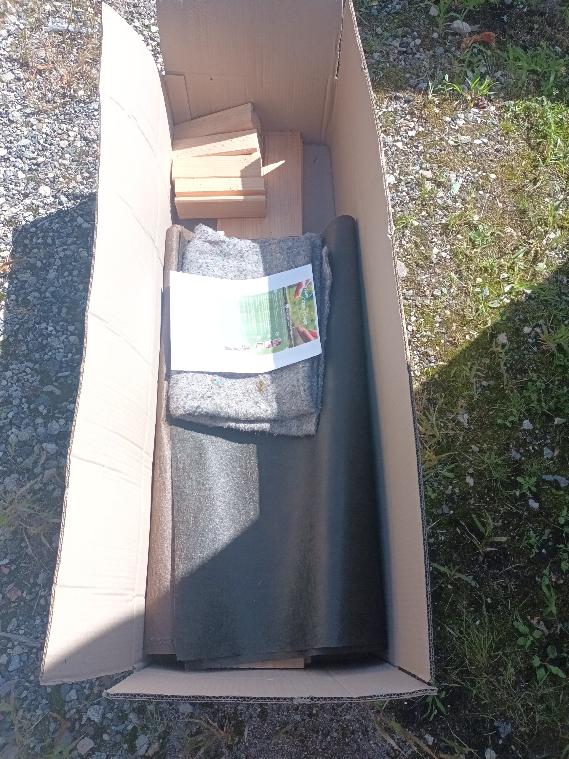 Bac sans fond en Douglas de 120 X 0,80 H 0,20 avec un tapis anti- rongeurs, une nappe de rétention d'eau 80 %, un tapis anti-racines, un sac de 15 kg de sable de rivière, deux sacs de 11 kg asséchés de substrats, et une fiche d'explication pour le montage.